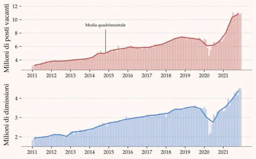 L’evoluzione quantitativa: dimissioni e posti vacanti crescono insieme