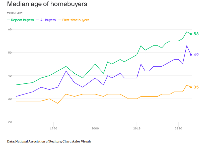 Una delle ripercussioni più evidenti di questa evoluzione del mercato è il progressivo invecchiamento degli acquirenti di prima casa. Il report NAR 2025 Profile of Home Buyers and Sellers rivela che l’età media ha toccato il record di 40 anni, un balzo significativo rispetto ai 33 anni del 2021 e ai 29 del 1981. Attualmente, solo il 21% degli acquisti immobiliari riguarda primi acquirenti, un minimo storico che riflette le difficoltà delle generazioni più giovani, come i millennial e i Gen Z, ad accumulare risparmi sufficienti per un acconto in un contesto di prezzi elevati e tassi ipotecari alti. Questo trend non solo altera il “sogno americano” della proprietà, ma ha implicazioni sociali più ampie, come un ritardo nelle decisioni familiari e una maggiore dipendenza dal mercato degli affitti.